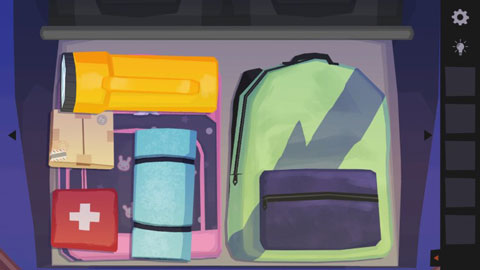 3、整理背包,检查手电筒、急救包等物品,为游戏进程准备所需装备。