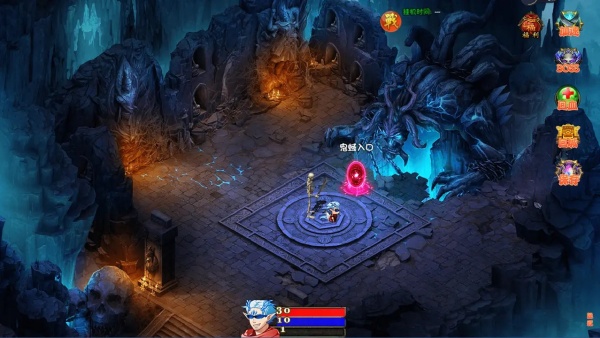 3、进入带有 “冤魂 ×6” 标识的洞穴场景时,先观察怪物分布和地形,利用场景中的火焰、石像等元素作为掩体,分批引怪战斗,避免被多个冤魂同时围攻,确保战斗效率与生存。