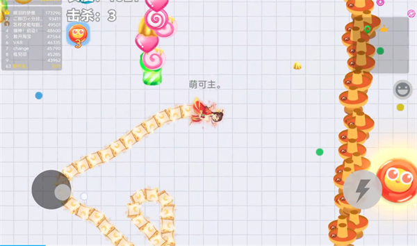 3、在游戏中在不同的情况可以使用加速功能找到将其他蛇撞到自己身上的方法;
