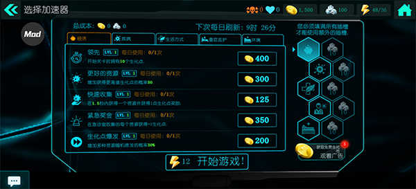 4、完成任务或看广告获取生化币,用于升级技能和解锁更多内容。