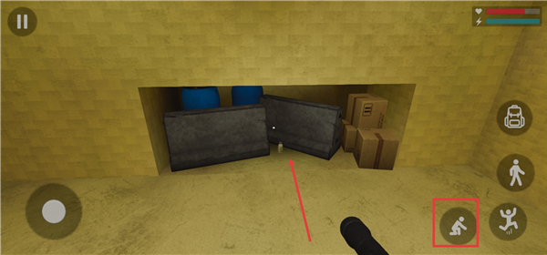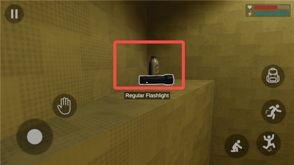 3、然后跳到凳子上,拿到手电筒和杏仁水。