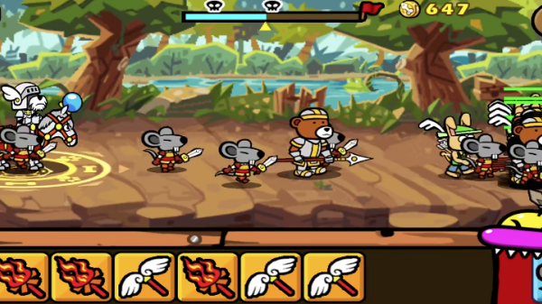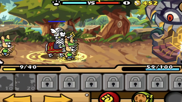 1、玩家需召唤各类士兵摧毁敌人基地,对方同样会召唤士兵,从而使两个军团展开精彩战斗。