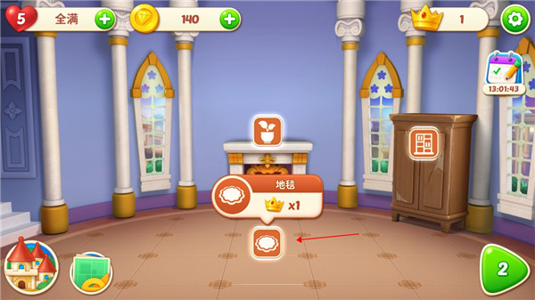 2、完成每个房间的布局设计即可获得丰厚奖励,包含金币及多种实用道具;