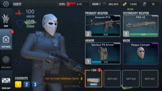 - 角色养成系统:通过解锁面具、防弹衣等装备,打造杀手小丑、特种部队等特色角色形象