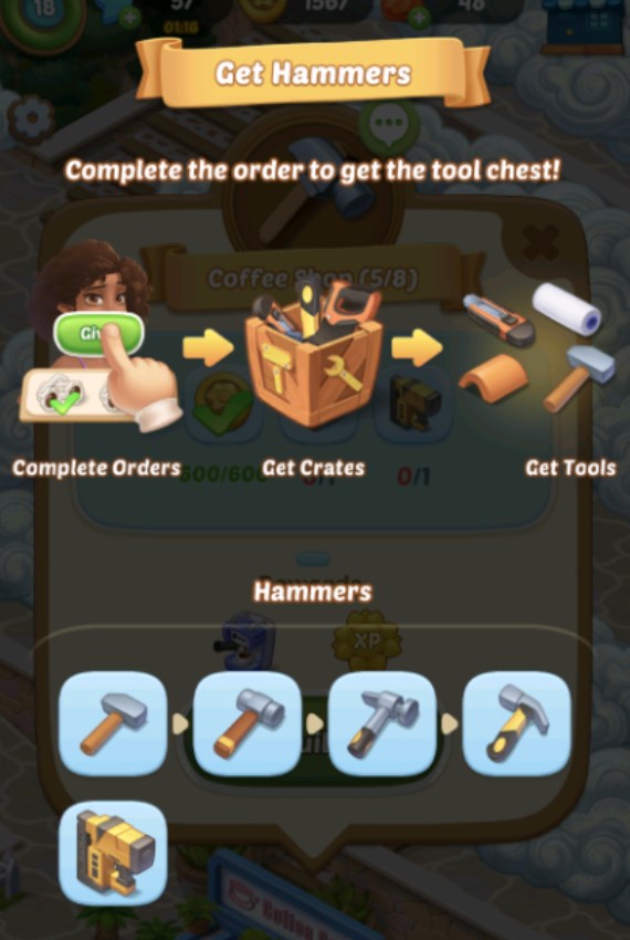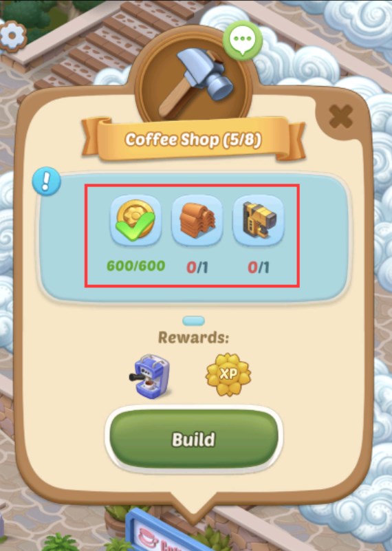 满足金币或工具数量要求后,点击建筑图标进入建造界面