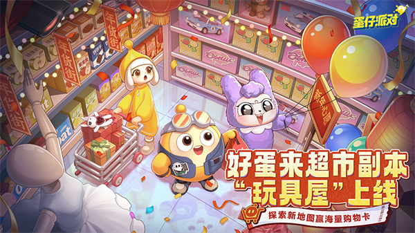 惊魂寻宝队*好蛋来超市*副本迎来「玩具屋」版本更新,新增副本区域"玩具区",怪物"熊兔气球"以及宝物"eggy游戏机"、"飞船模型"、"玩具卡车"悉数登场,带你重温那个停在春天的梦。