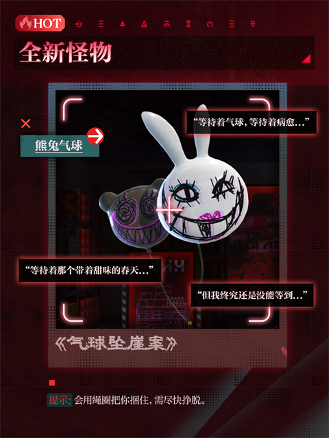 遇到熊兔气球别慌张,及时召唤队友或拿起武器戳破气球,即可轻松逃脱~