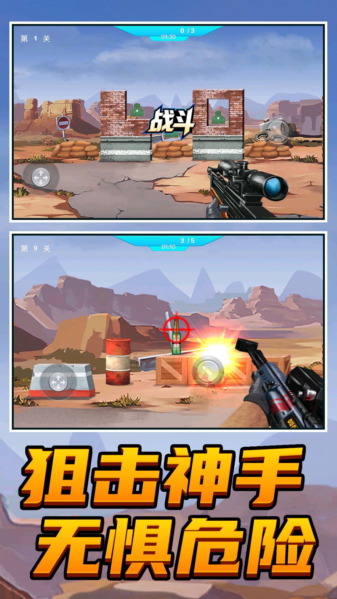 3、合理规划狙击顺序,在多目标关卡中逐个击破,于限时内达成指定的击杀数量。