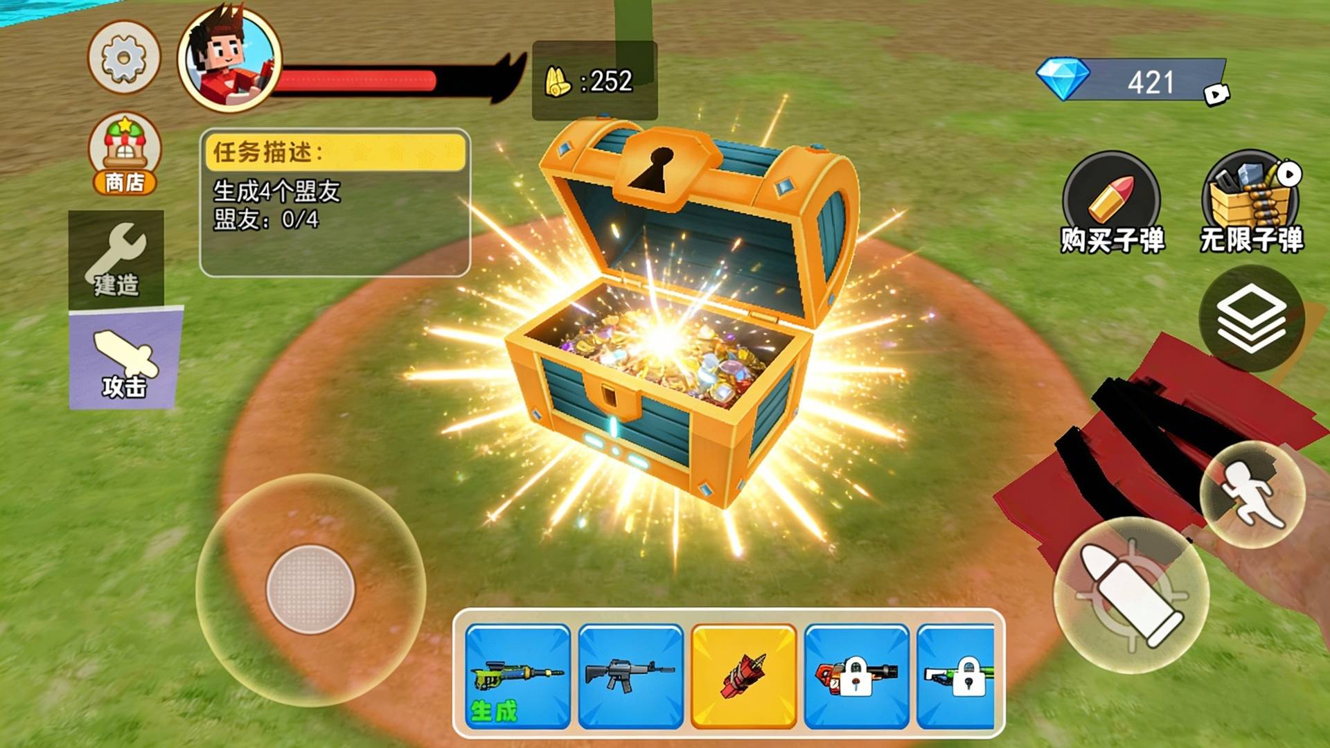 水方块空岛生存游戏:玩家操控的角色皆为备受欢迎的卡通形象,诸如超级可爱的刀盾狗或者小猫咪。地图中的宝箱藏有重要资源,唯有找到它们方可获取武器与医疗物品,在与其他玩家对战时,可借助绷带恢复生命值,若被子弹击中头部,将会直接被淘汰!